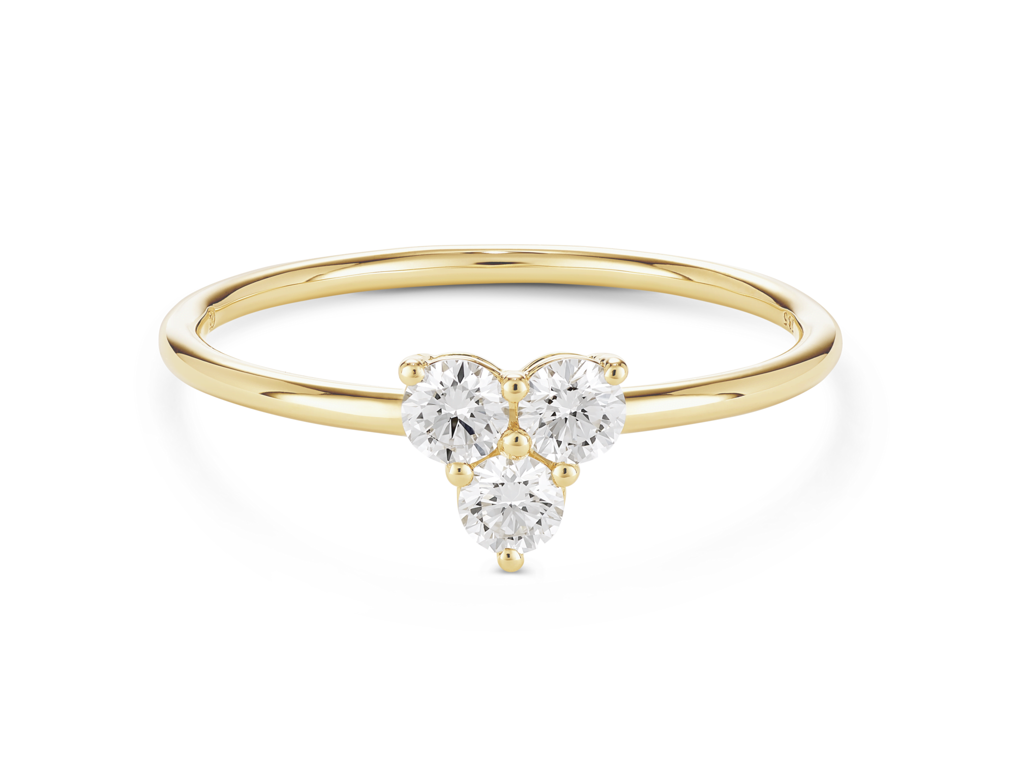 Set in 14k gold, the Mini Trio ring is the perfect everyday accessory whether worn alone or stacked with other rings. Choose between white or yellow gold depending on your style or wear both colors together for a mixed metal look. So go ahead and add a little sparkle to your day!