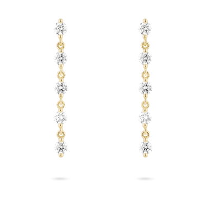 Handcrafted in 14k gold and featuring 1.5ct. tw. round brilliant cut lab-grown diamonds these drop earrings are a real party essential. Each 0.15 carat stone is graded at VS+ clarity, Very Good cut, Near Colorless and grown from 100% renewable energy.