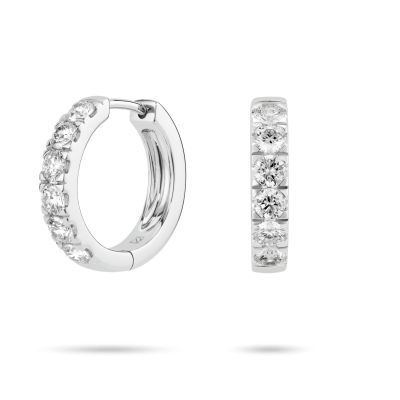 Our long awaited pavé hoops are available in 14k yellow and white gold. Each stone is 0.2 carat of VS+ clarity, Very Good cut and Near Colorless, giving off a stunning sparkle and great for everyday wear.