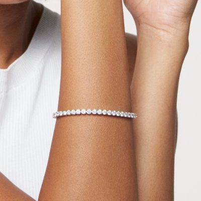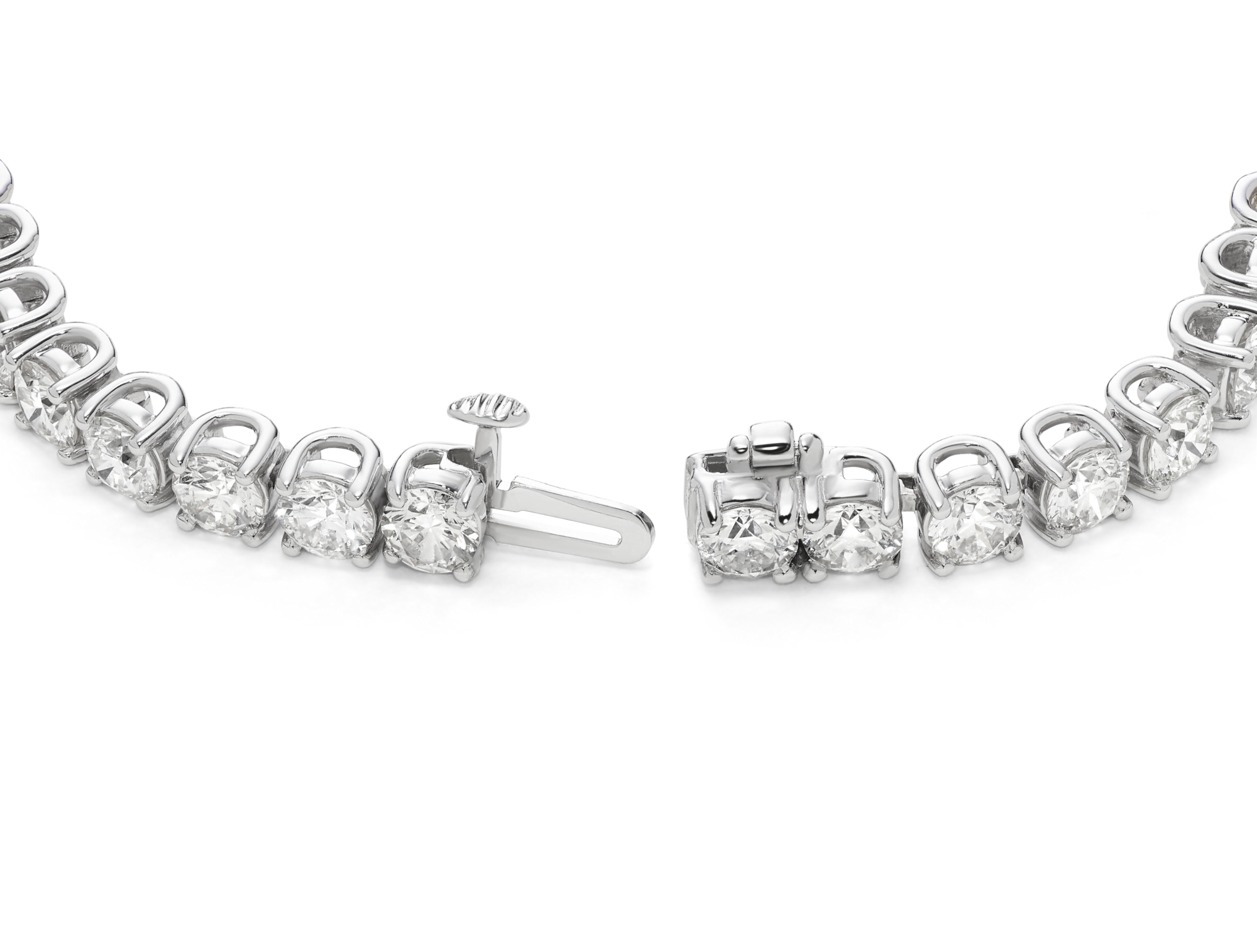 Beautifully handcrafted in 14k gold, our tennis bracelets feature a continuous row of round brilliant cut lab-grown diamonds, graded at VS+ clarity, Very Good cut and G/H color. Each bracelet features a secure box clasp which fits seamlessly with the design.