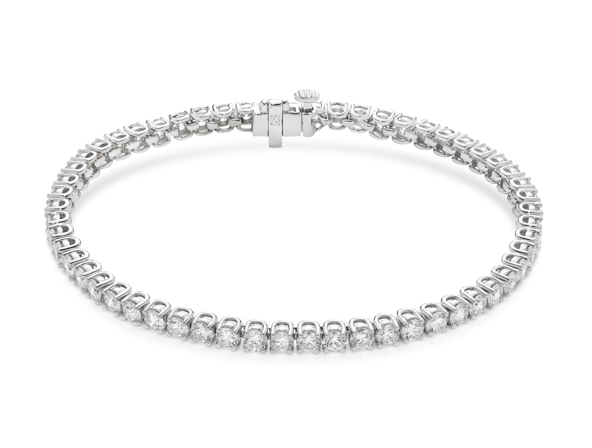 Beautifully handcrafted in 14k gold, our tennis bracelets feature a continuous row of round brilliant cut lab-grown diamonds, graded at VS+ clarity, Very Good cut and G/H color. Each bracelet features a secure box clasp which fits seamlessly with the design.